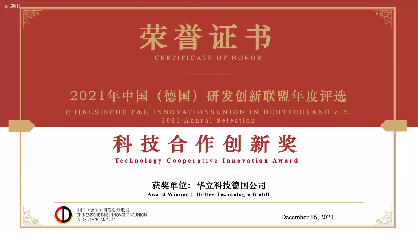 16-декабрда Deutschlandдагы Chinesische F & e InnovattionUnion e.v. жылдык 2021 жылдык тандоо өткөрдү. Конференция "Инновациялык инновациялык сыйлыкты" "Холли Технология Гомбага" мактап, Германиянын Einfo Smart Meter компаниясынын жаңы муундарын баштоо үчүн мактоо үчүн "Инновациялык Технология Гомбага" сыйланды. Holley Technology - деңгээлинде Германиядагы ири кубаттуулуктагы ири электр тармактары менен бирдиктүү кызматташуу жана электр метринин стандарттарын түзүү жана текшерүүгө активдүү катышат. Тез арада ишке киргизилгенден кийин, бир нече адаптерлерди ыңгайлуу орнотууга көмөктөшөт жана ар кандай өтүнмө сценарийлеринде бир нече адаптерлерди ыңгайлуу орнотууга жана ыңгайлуу чогултууга жана мүмкүнчүлүктөрүн алууга көмөктөшөт.